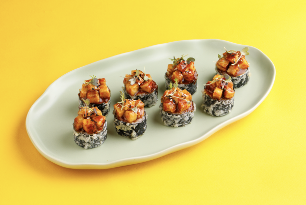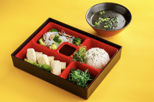 С хрустящим тофу, фунчозой, чукой, рисом и трюфельным унаги