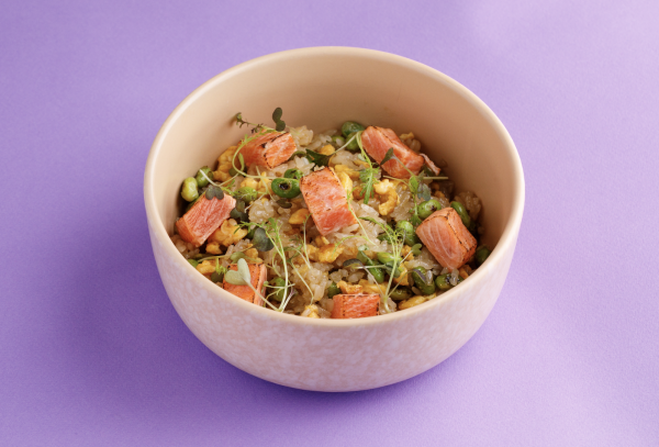 Донбури с форелью, авокадо и кунжутным соусом